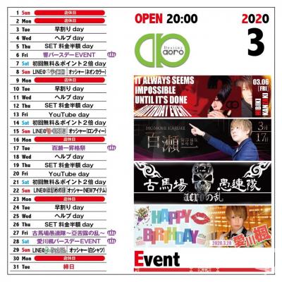 毎日、曜日イベント開催中!!