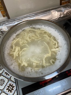 鍋で湯がかれているぅー