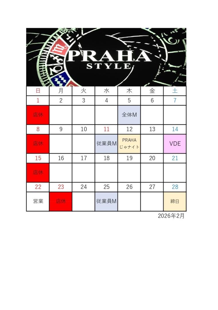 メンズ(パブ・メンズバー)PRAHA STYLE本日の出勤スタッフ