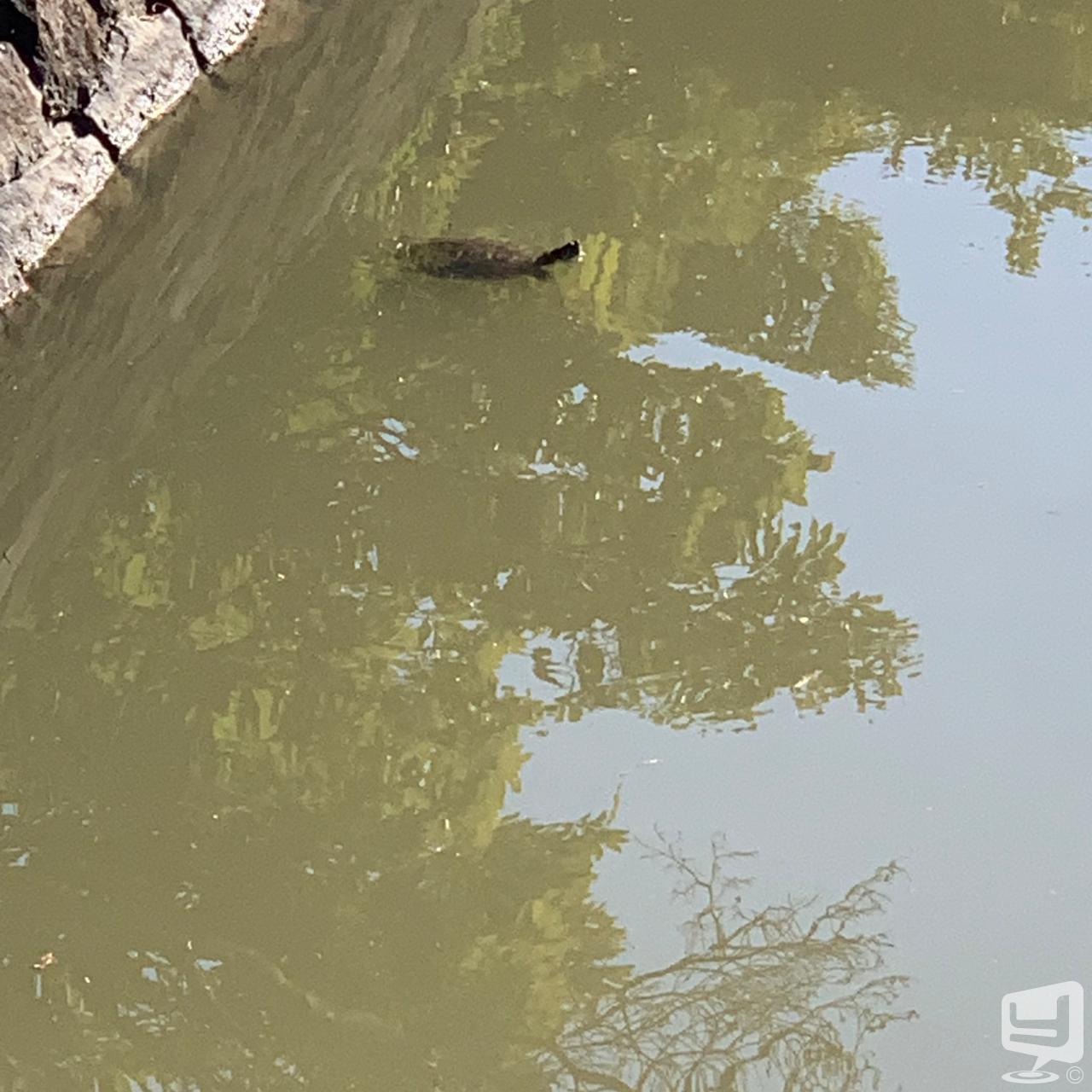 美術館の川にいたカメです ペットが逃がされた子じゃなければ良いな