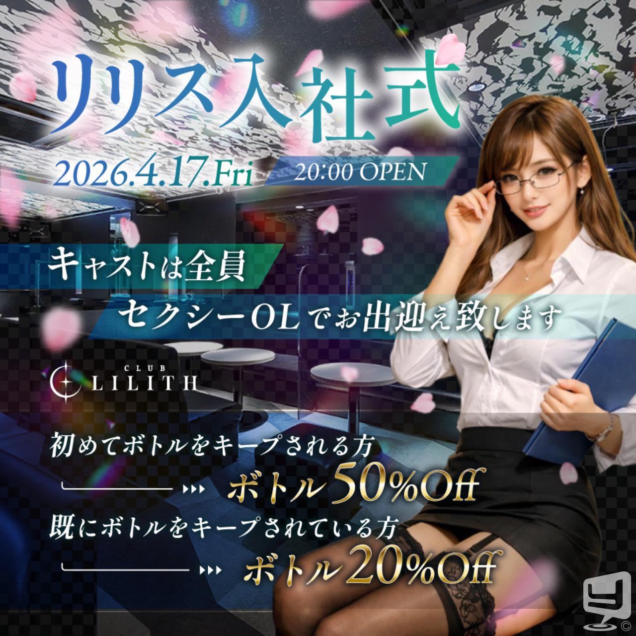 4月17日(金)20:00〜 リリス入社式を行います⭐︎ 女の子達はせくすぃ〜なOL風衣装!!! ガーターベルトは男のロマンでしょ😍 そして、お得なキープボトル割引きも✨ この機会にぜひボトルをキープして あなたもリリスの一員になりませんか? たくさんのご来店お待ちしております🙇♂️